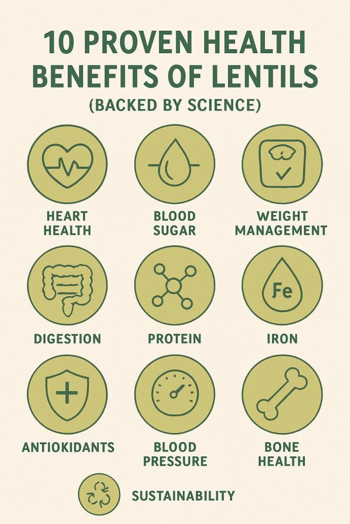 Below are ten evidence-based health benefits of lentils, supported by recent scientific and institutional research.