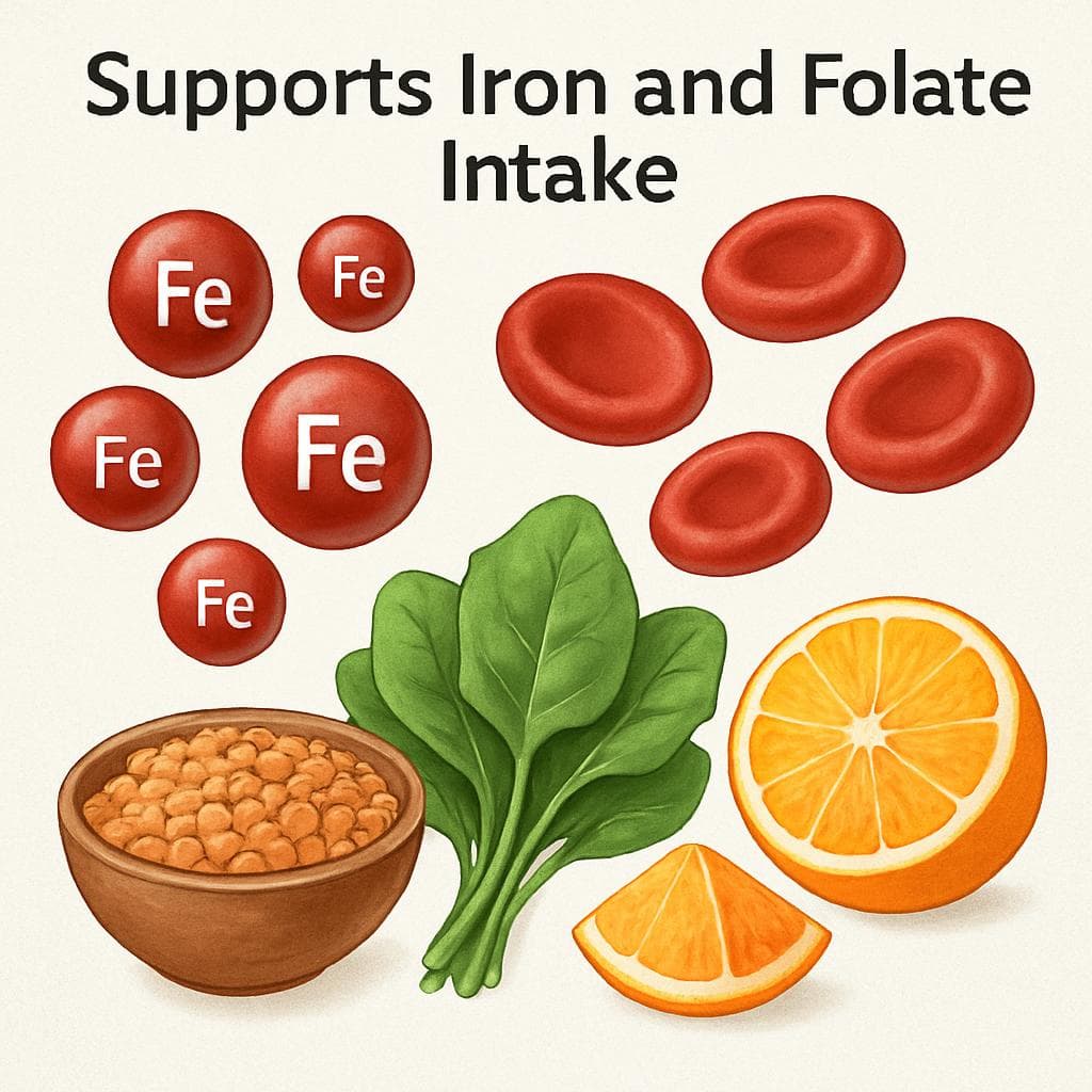 Tip: Add vitamin C–rich foods (tomatoes, citrus, bell peppers) to meals to improve iron absorption.