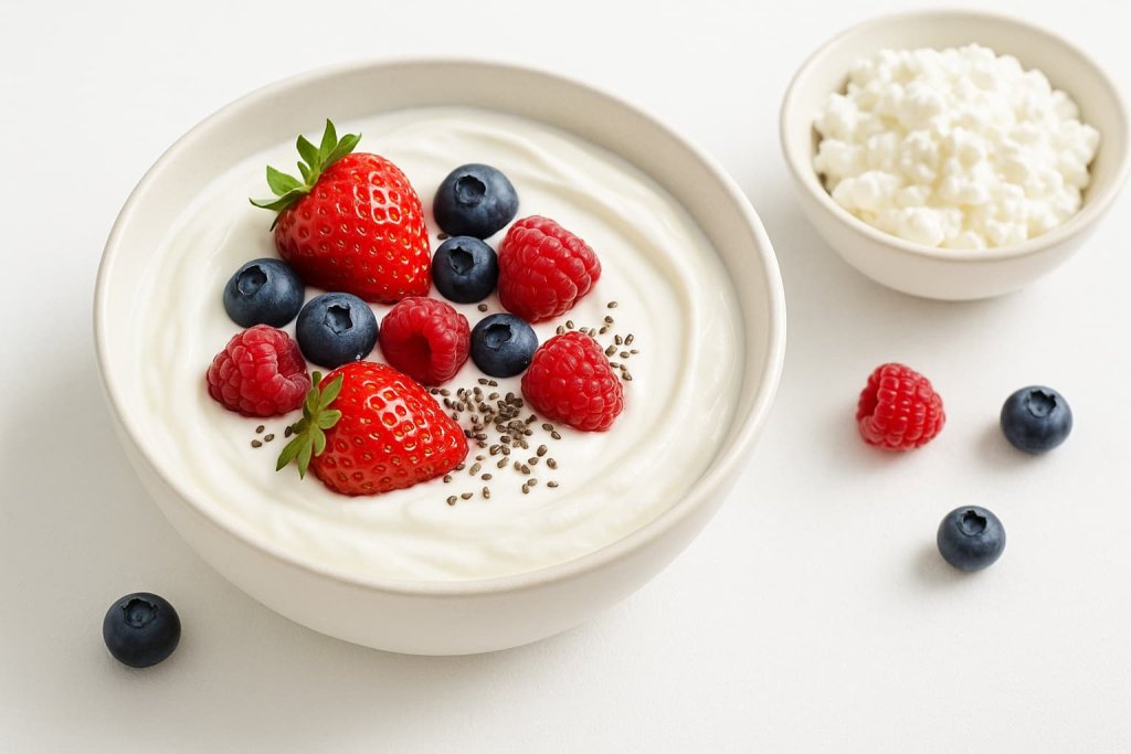 Greek yogurt and cottage cheese supply protein and beneficial nutrients such as calcium. Their thick texture slows digestion, which may help support longer-lasting fullness. According to the National Institutes of Health, higher-protein dairy foods can support lean mass preservation during calorie reduction. Choosing plain, unsweetened options helps keep added sugars low while maximizing nutritional value.