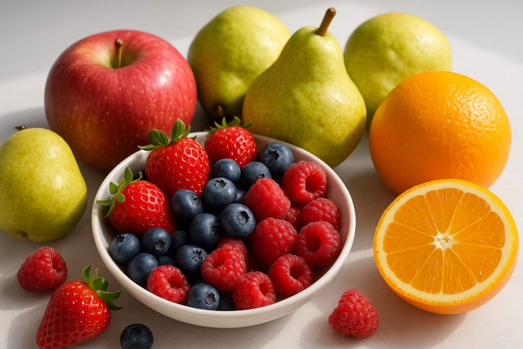Berries, apples, pears, and citrus fruits supply fiber and water, making them naturally low in energy density. These features may help support appetite control by adding volume to meals without significantly increasing calories. According to the Centers for Disease Control and Prevention, using low-fat, fiber-rich foods such as fruits and vegetables is a practical strategy for reducing calorie intake while maintaining fullness — which may support healthier weight management. Moreover, fiber-rich fruits contribute vitamins, minerals, and antioxidants that support overall nutritional quality.