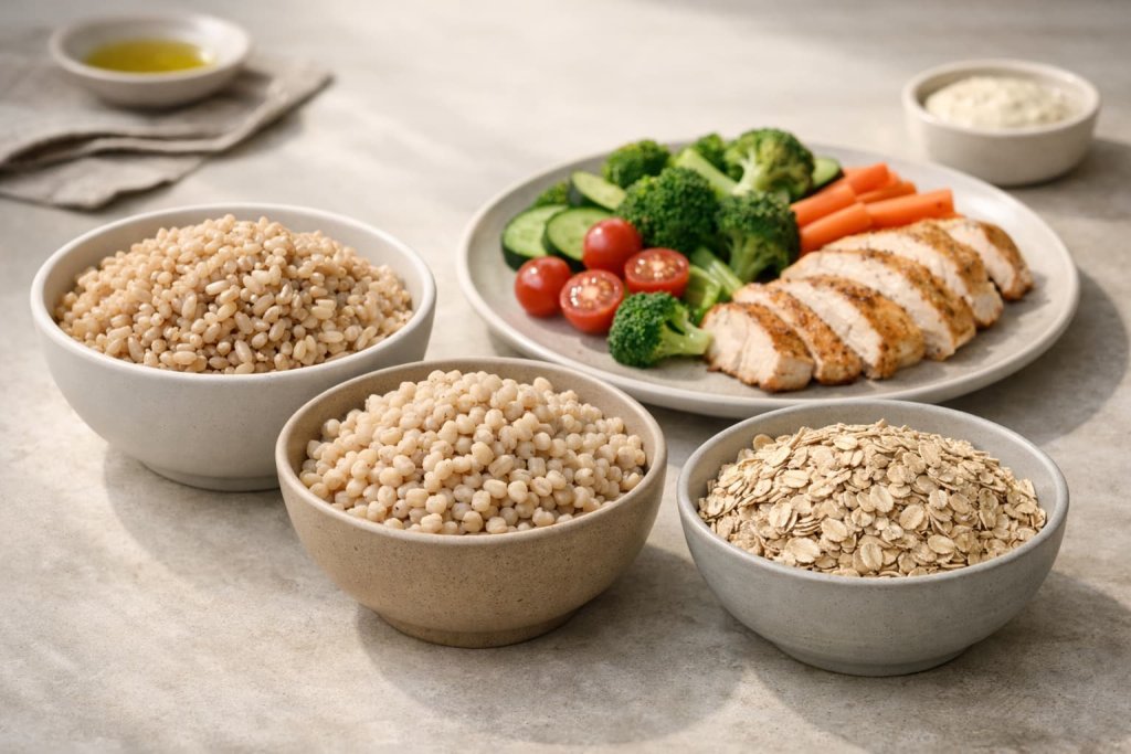 Whole grains such as barley, brown rice, and whole wheat foods can help support digestive regularity because they add fiber. NIDDK lists whole grains among major fiber sources, and its IBS guidance lists whole-grain products as a source of insoluble fiber.