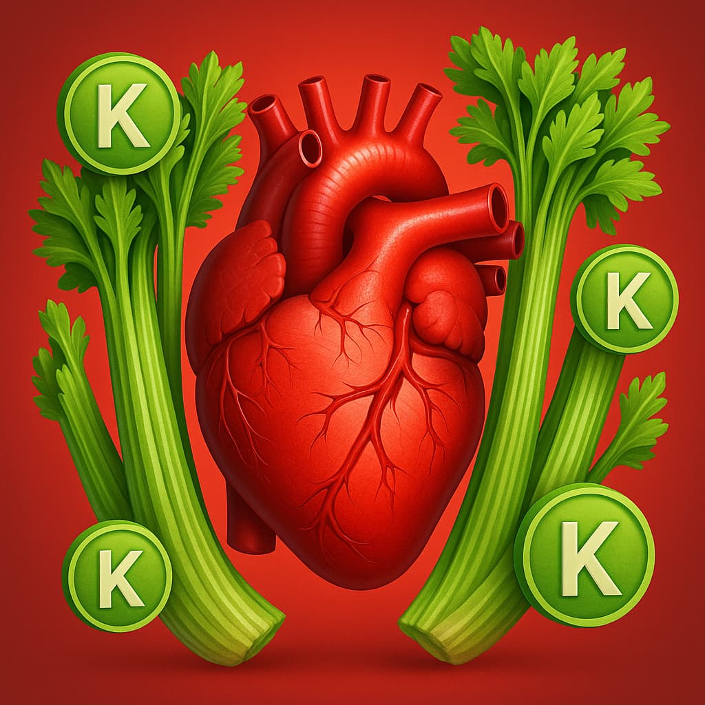 Celery is also a good source of potassium, an essential mineral that helps balance sodium levels and maintain normal blood pressure. The American Heart Association (AHA) emphasizes that potassium-rich foods — such as celery, spinach, bananas, and sweet potatoes — can help offset sodium’s effects and support long-term heart function.