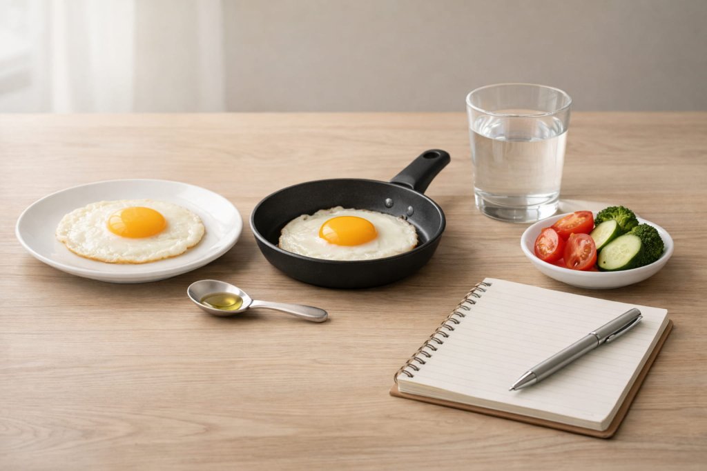 The biggest thing to watch is not usually the egg itself. It is the oil, butter, and side foods that can turn a light meal into a much heavier one. If you want the most practical answer, count the egg and the cooking fat together.