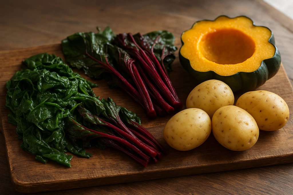 Vegetables are among the most concentrated natural sources of potassium, offering essential vitamins, minerals, and fiber in every serving. Many cooked leafy greens—such as spinach, beet greens, and Swiss chard—provide substantial amounts of potassium that support normal muscle function and electrolyte balance. Starchy vegetables like potatoes, sweet potatoes, and winter squash also deliver meaningful potassium and contribute to steady energy. According to the U.S. Department of Agriculture, vegetables play an important role in meeting recommended potassium intake levels because they supply a broad mix of nutrients in relatively low-calorie portions.