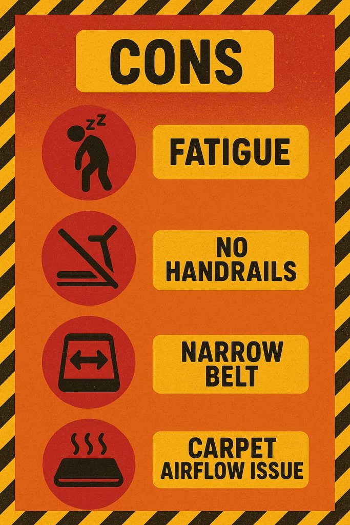 Walking pads usually lack handrails and emergency stop cords, making balance crucial.