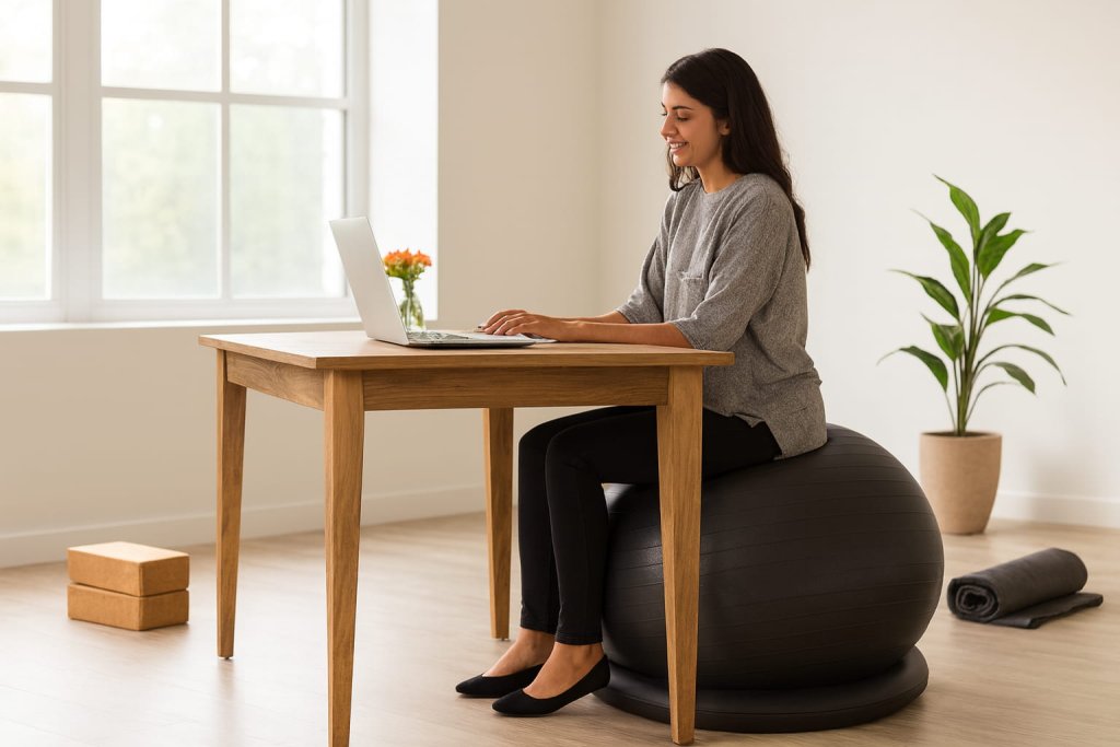 Fabric-covered balls blend seamlessly into modern spaces, while gym-style PVC balls suit home gym environments. Measure your workspace to ensure the ball or chair frame fits comfortably under or around your desk.