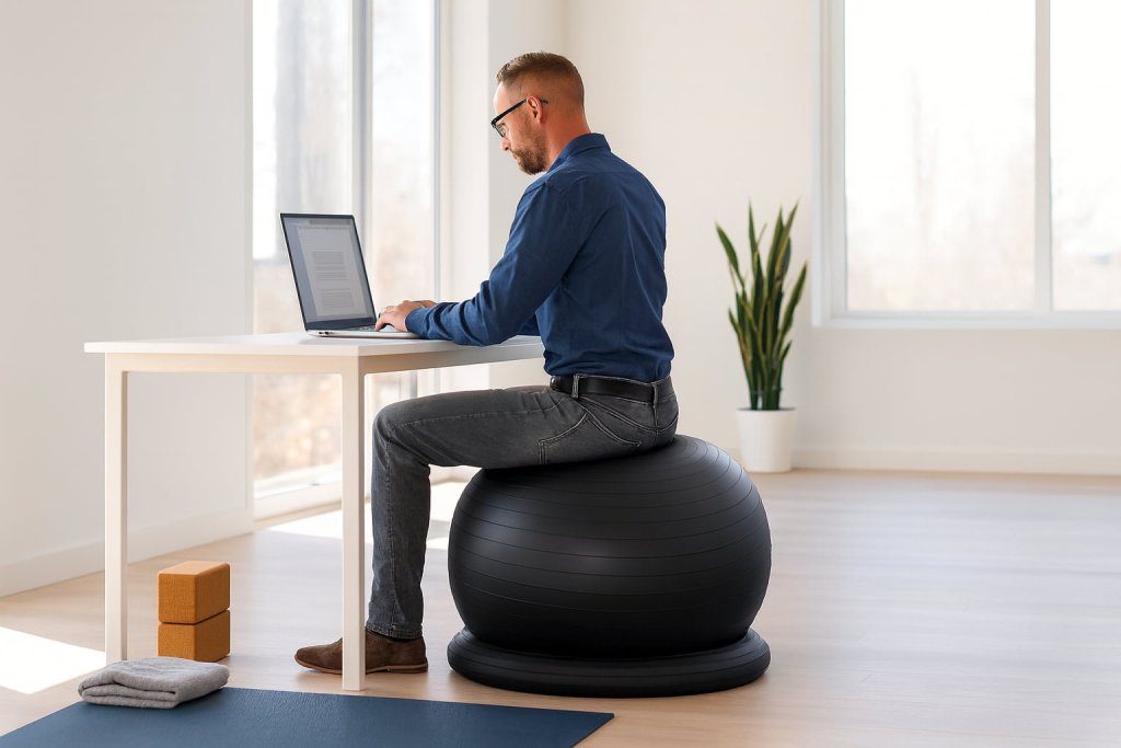 Finally, avoid long-duration sitting when fatigued. Overuse of core muscles can lead to compensation and slouching. Alternate between an ergonomic desk chair and the yoga ball chair throughout the day for balanced support.